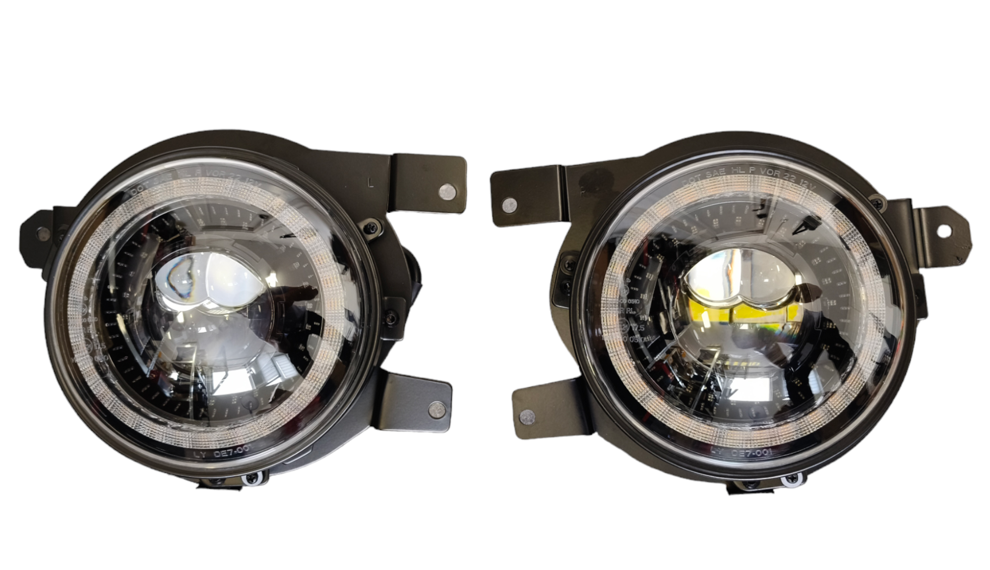 Reflektory LED przód model Dragon do Suzuki Jimny z dedykowanymi mocowaniami oraz przyłączami do fabrycznej instalacji elektrycznej świateł.